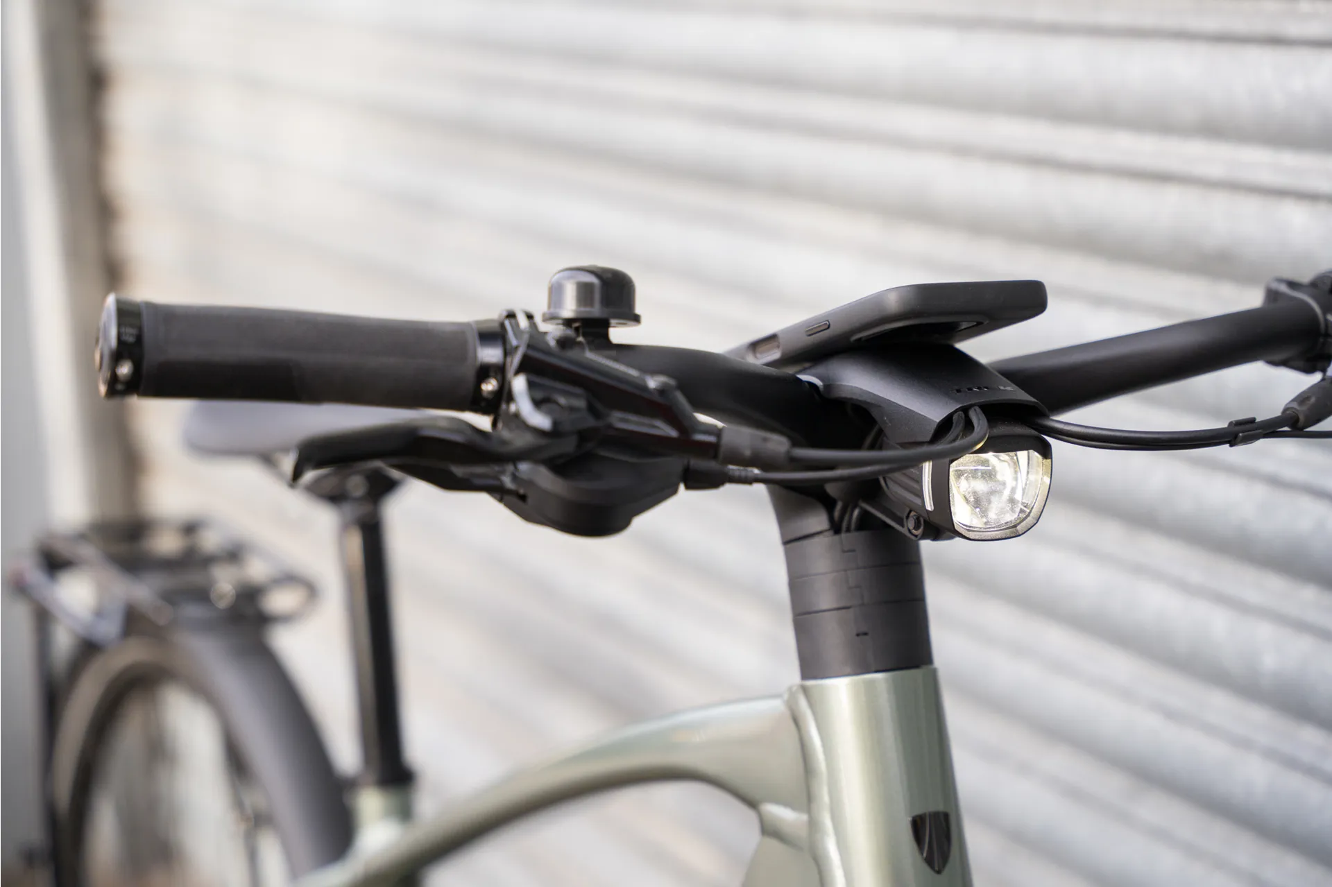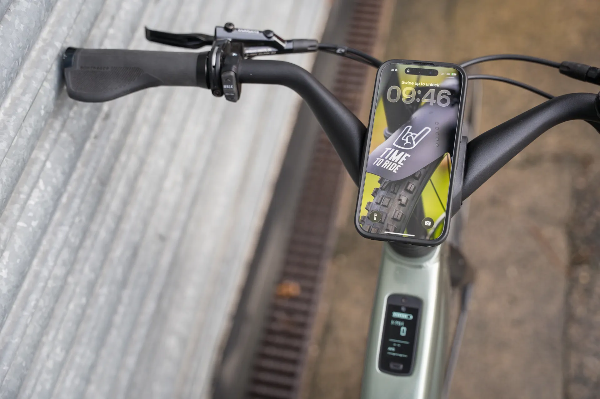 A Quad Lock mount on the stem lets you securely attach your phone to your bike and provides wireless phone charging while you ride.