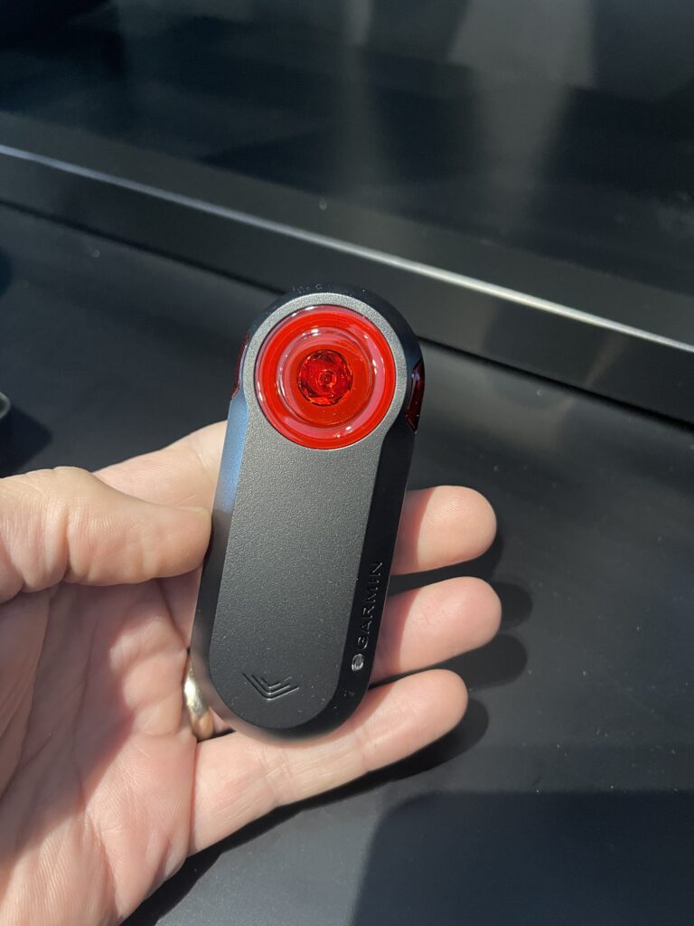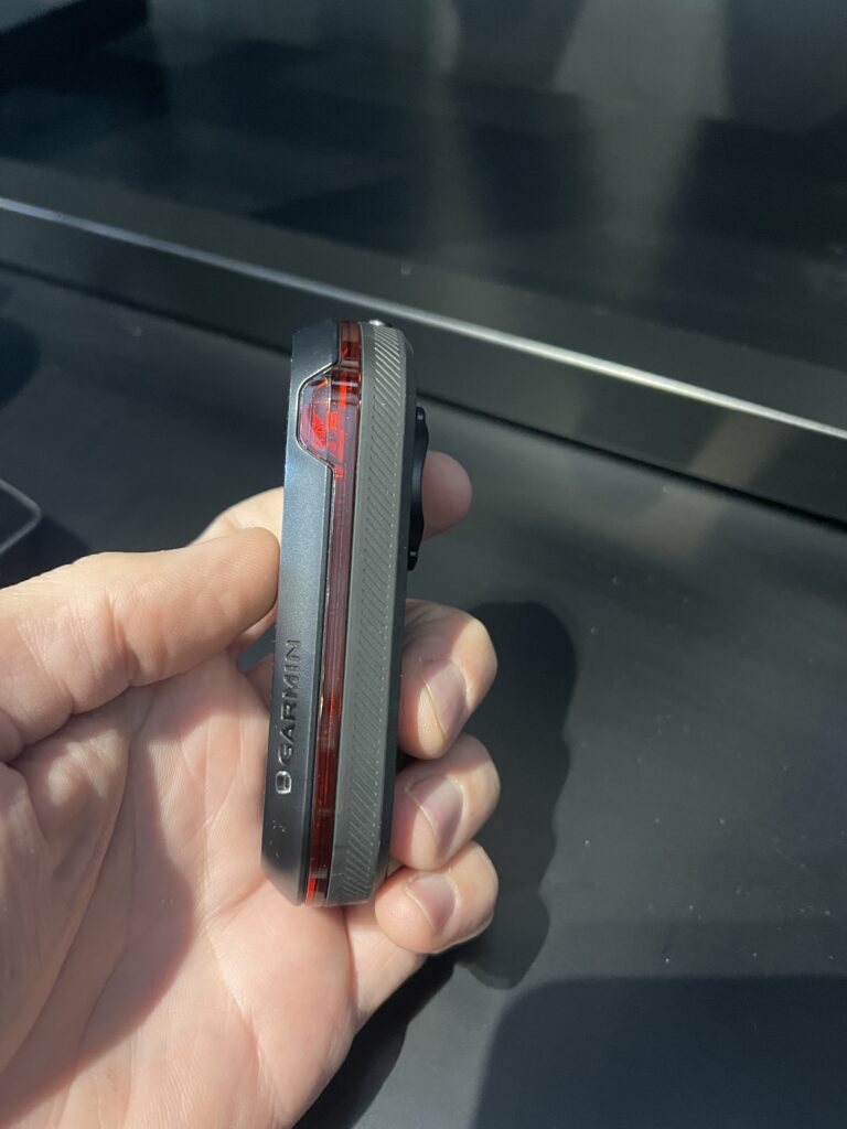 A bit about the ‘light’ for those not familiar with the Varia… it is a Radar unit, with a light (a very bright light). The in-built Radar detects vehicles approaching from behind (from about 150 meters away – which is plenty) and when it does you get an audible bleep and a graphic on your head unit (works with Garmin & Wahoo) telling you a vehicle is approaching. Better still, the graphic and audio warnings are brighter and louder depending on how fast the vehicle is approaching. And….. the Varia’s light flashes more quickly and brighter to make you even more visible to the approaching driver – so everyone is more aware and safer.