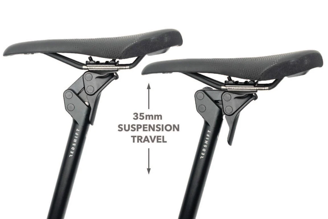 Looking for more? RedShift also offers a fine-tuned Endurance Pro Seatpost and a Pro Race Seatpost. The Endurance Pro offers a lightweight seatpost with a sporty yet damped feel, highly tunable stiffness, and 35mm of travel. This new design features a combination of elastomers and coil springs for a more progressive spring rate and controlled travel while still maintaining small bump sensitivity and low weight. Perfect for gravel, adventure, road, and MTB riders.